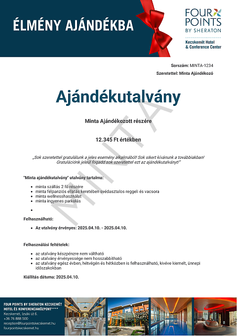 - Vasárnapi büféebéd (12:00-15:00), ebéd előtt vagy után a Fittness & SPA részleg használatával min.